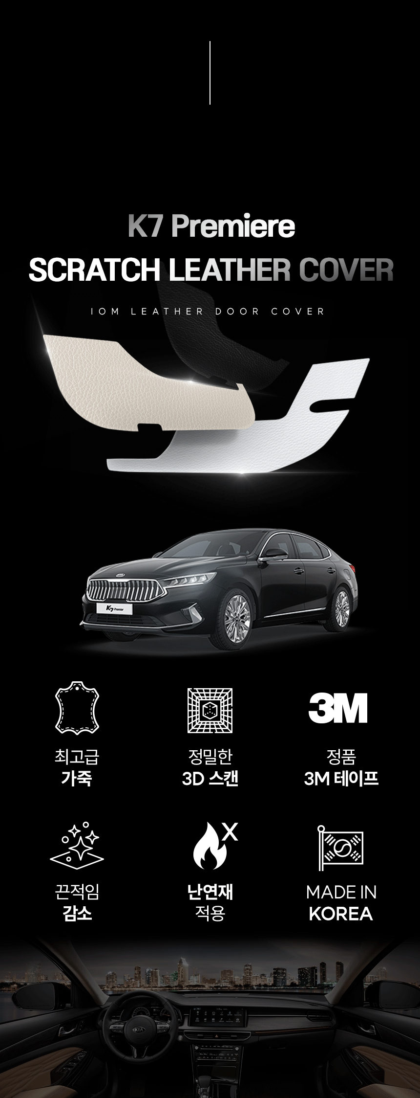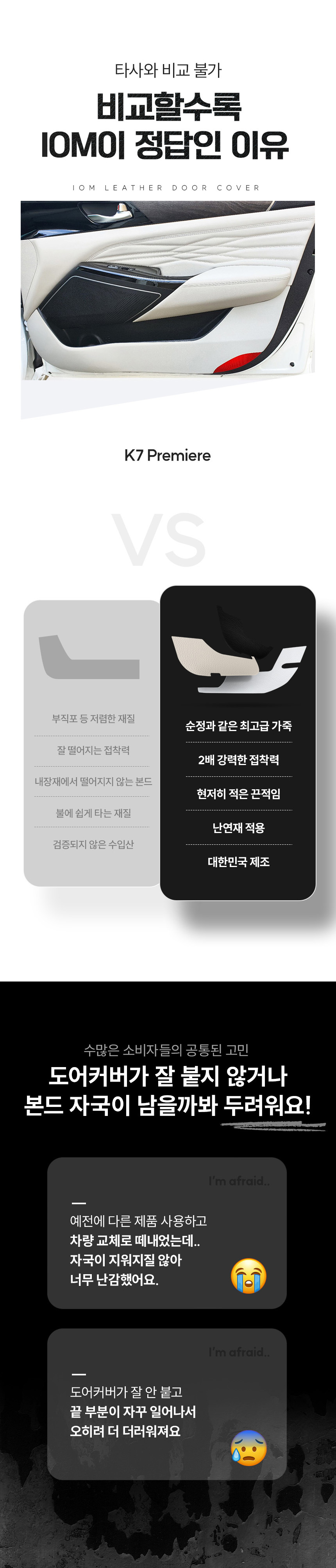 IOM K7 프리미어 가죽 도어커버 튜닝 자동차 순정형 BK