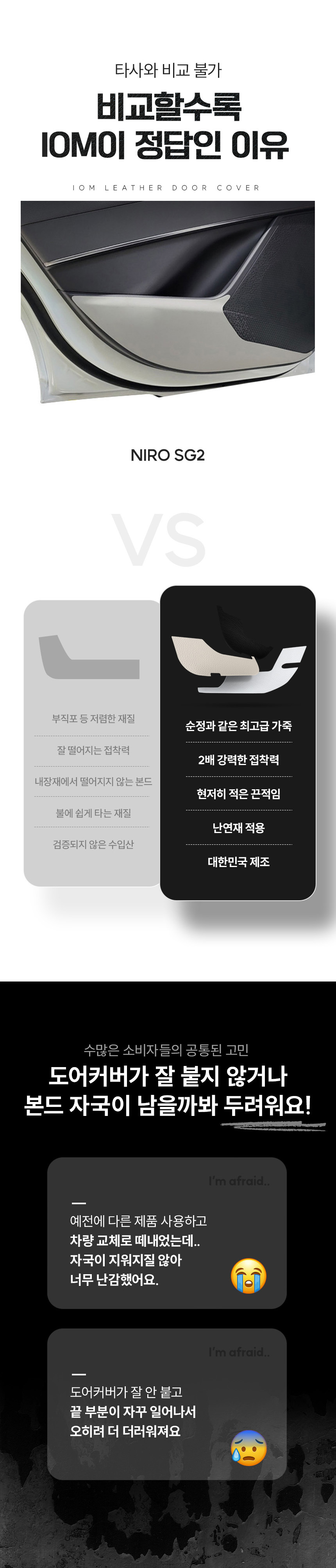 IOM 니로 SG2 가죽 도어커버 자동차 튜닝 순정형 BK