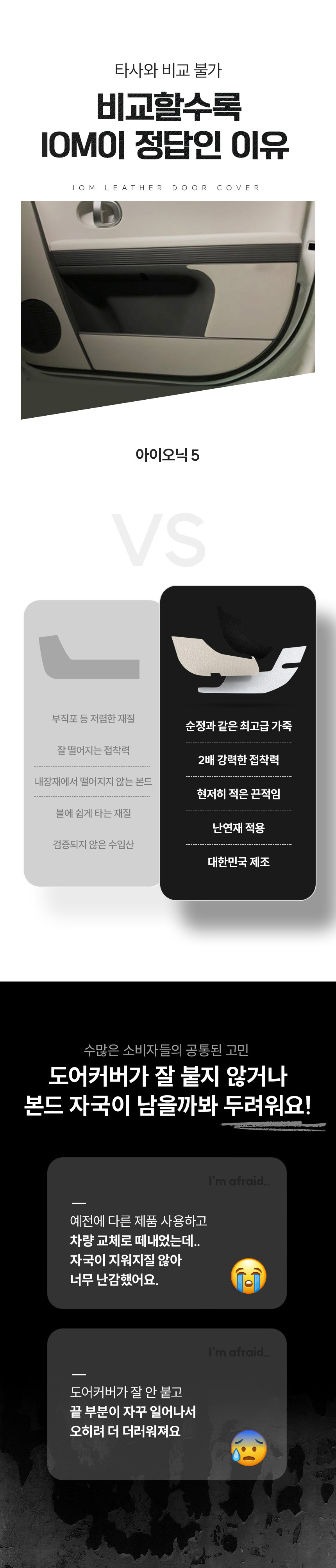 IOM 아이오닉5 가죽 도어커버 튜닝 자동차 순정형 BK